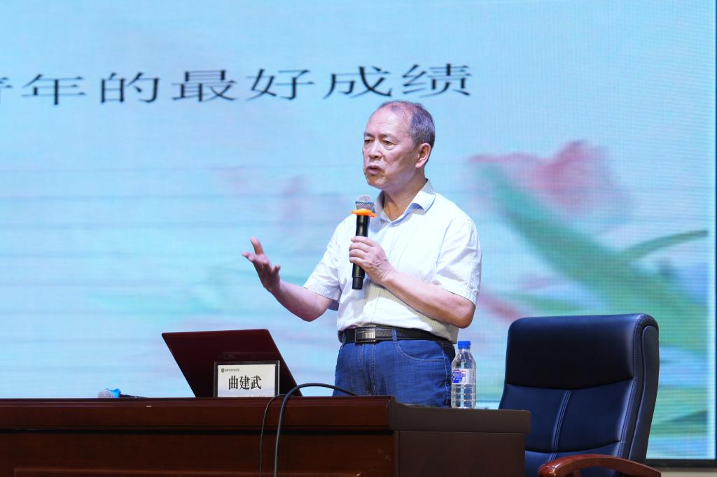 20日下午,曲建武教授给学生作了题为《在青春的赛道上跑出人生最好成绩》的报告。学校360余名学生代表参加学习。